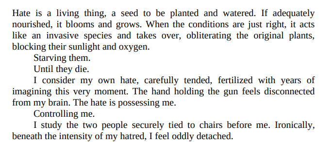 The story of the novel is simply spell bounding right from the beginning. Melinda Leigh is a skilled writer, simply means you read two pages and then you just can’t stop reading until you finish the whole book. Melinda Leigh is successful in capturing the interest of the readers, right from the beginning till the end.